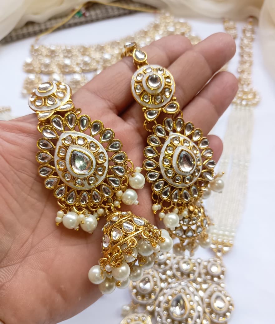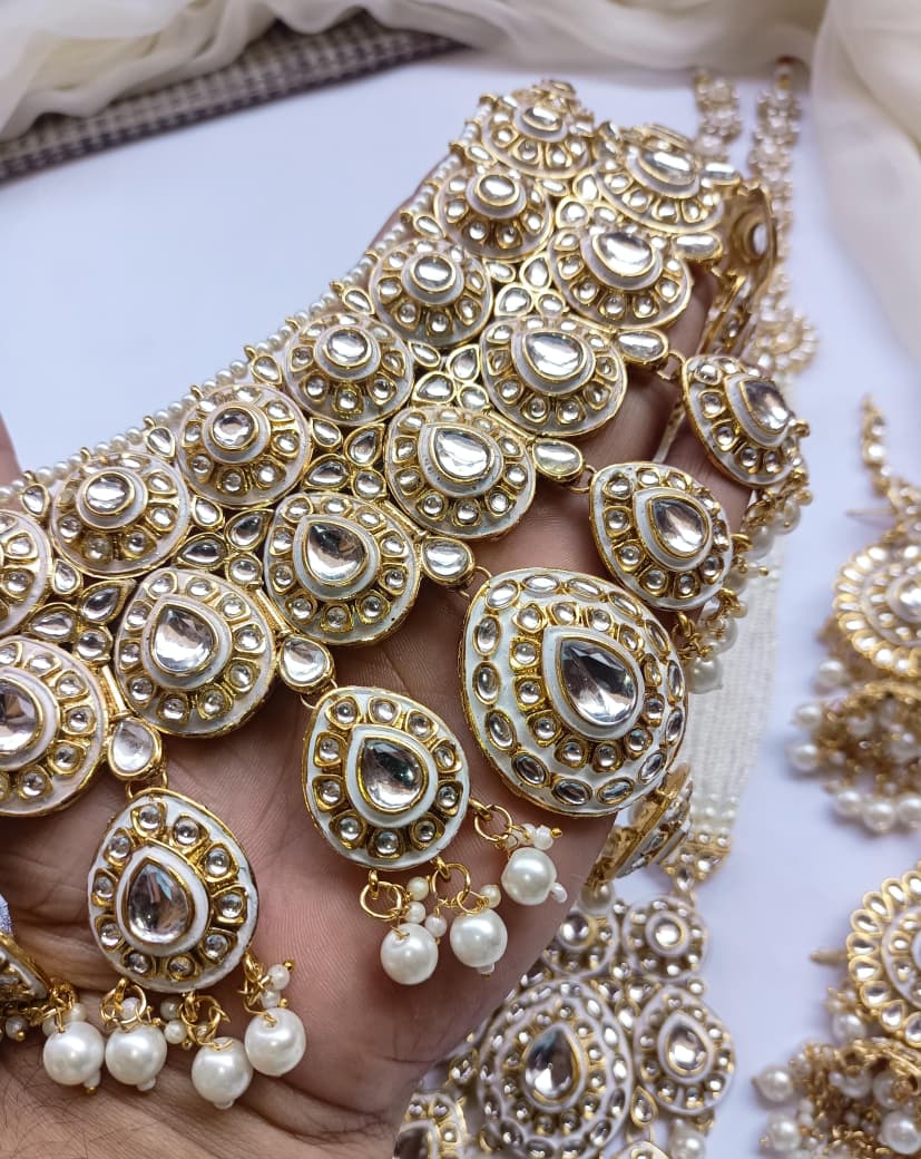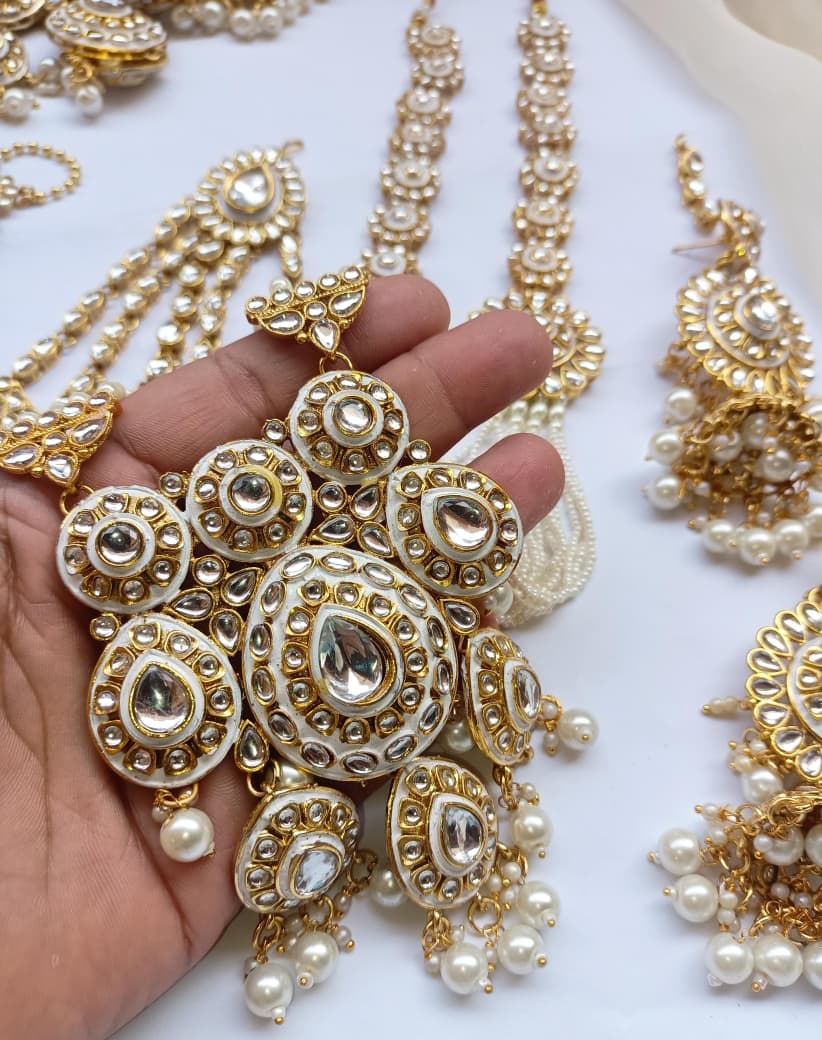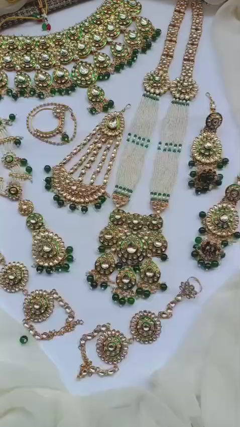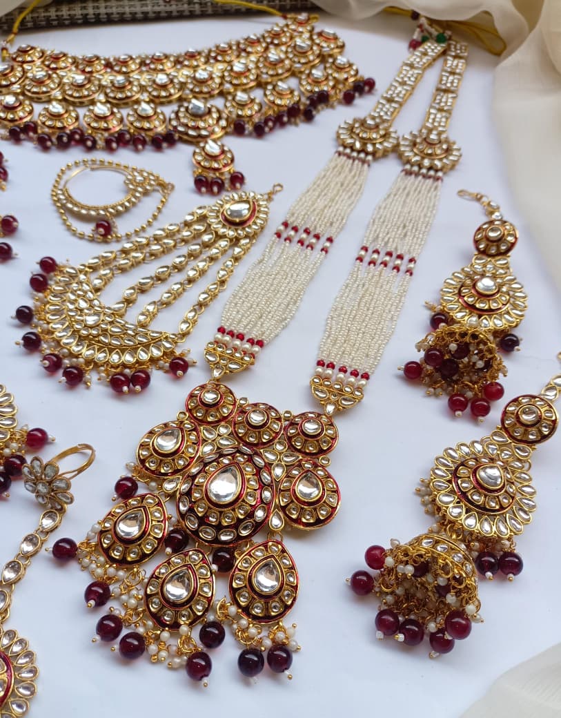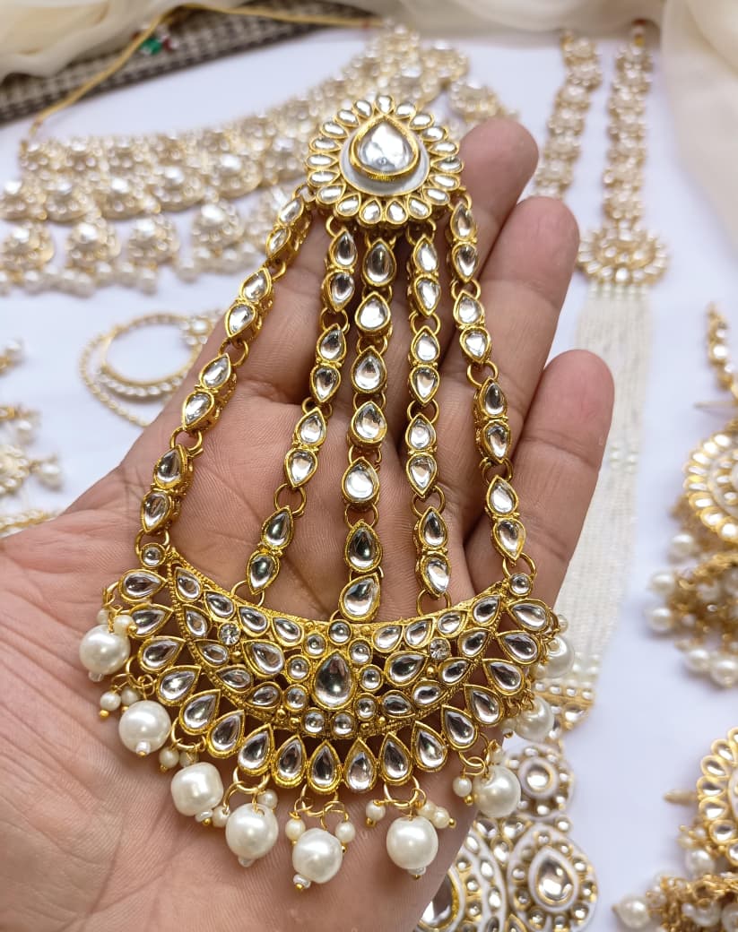 Designer Collection Indian Dubbi Kundan Stylish Complete Bridal Dholna Package represents the pinnacle of traditional bridal craftsmanship. This exquisite ensemble combines authentic kundan work with contemporary styling, featuring intricately detailed pieces that showcase masterful gemstone setting and traditional metalwork. Each component is thoughtfully curated to create a cohesive bridal look, from ornamental accessories to statement pieces that capture the essence of Indian wedding aesthetics. The collection emphasizes quality materials and precision craftsmanship, ensuring durability alongside visual splendor. Perfect for brides seeking an authentic yet refined approach to traditional bridal adornment, this package delivers comprehensive styling solutions for your most significant celebrations.