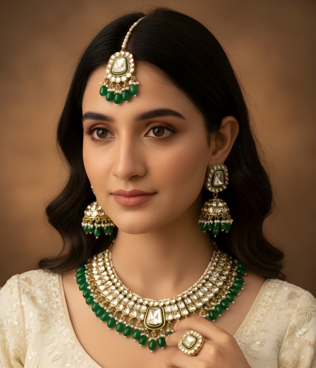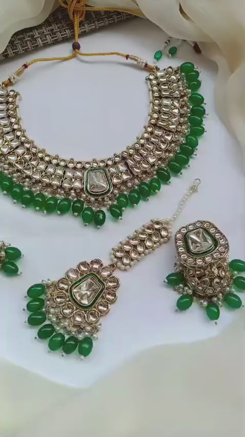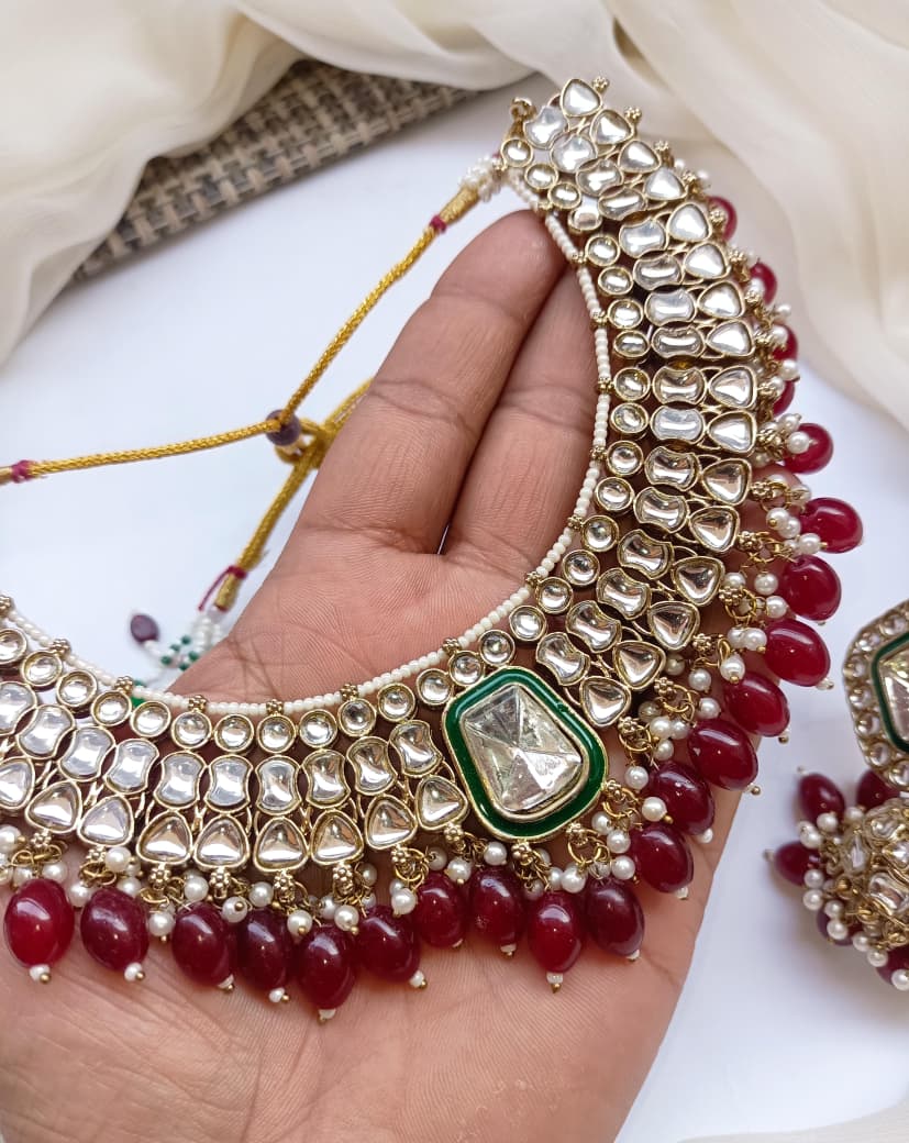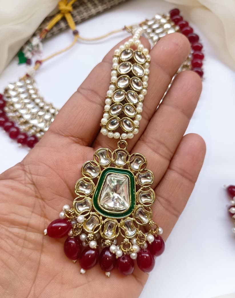 Elevate your traditional jewelry collection with this exquisite Necklace Set featuring authentic Indian craftsmanship. The ensemble showcases intricately designed Jhumkis adorned with lustrous Kundan work, complemented by an antique polish finish that exudes timeless elegance. Each piece reflects meticulous attention to detail, combining the ornamental Dubbi technique with classic Indian aesthetics. The coordinating Teeka adds a refined finishing touch, completing your ceremonial or festive look with sophistication. Crafted to enhance both bridal and everyday ethnic wear, this set represents the perfect marriage of traditional artistry and contemporary style. An investment in heritage jewelry that transcends seasonal trends.
