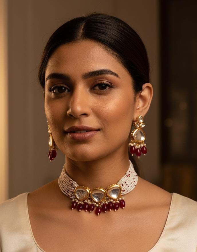 Elegant Indian Jaipuri Kundan MeenaWork choker set, perfect for parties.