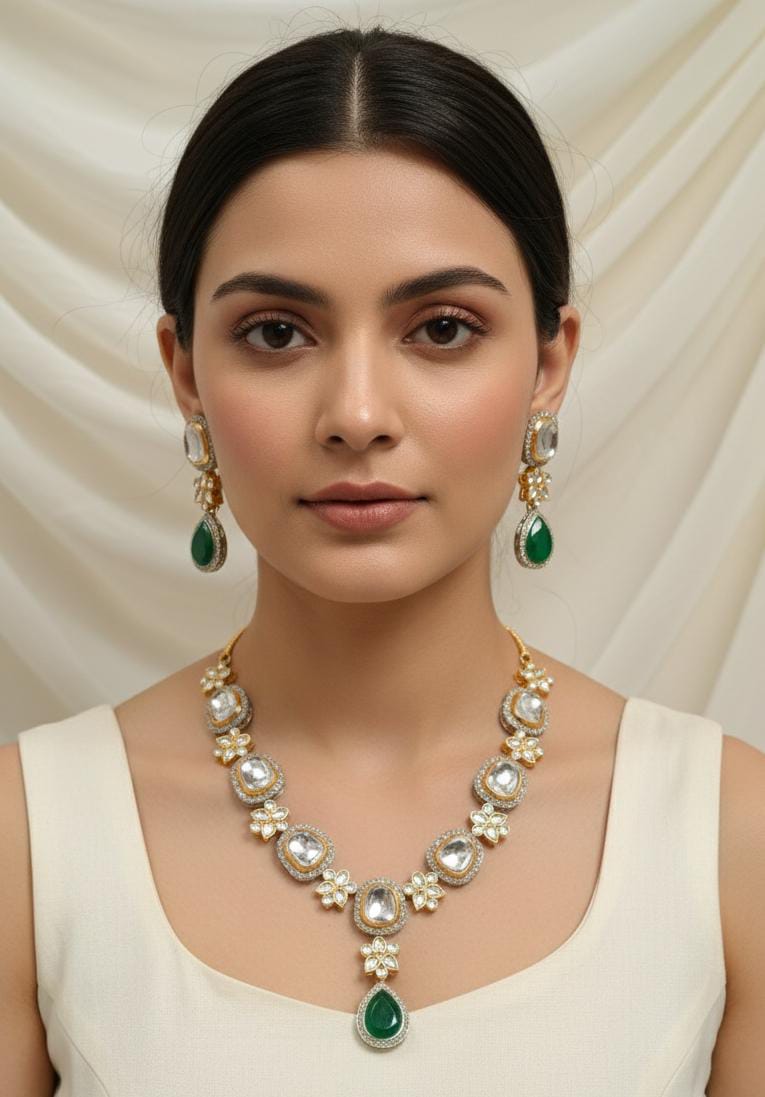 Elevate your traditional attire with this Designer Collection Indian Uncut Stylish PartyWear Mala Set, expertly crafted to add a touch of sophistication to any festive occasion. Featuring intricately uncut stones arranged in an elegant design, this mala set effortlessly blends timeless craftsmanship with contemporary style. Perfect for weddings, celebrations, or formal events, it enhances your outfit with its subtle shine and detailed artistry, ensuring you make a confident statement. Durable and comfortable to wear, this set is a valuable addition to any connoisseur’s jewelry collection.